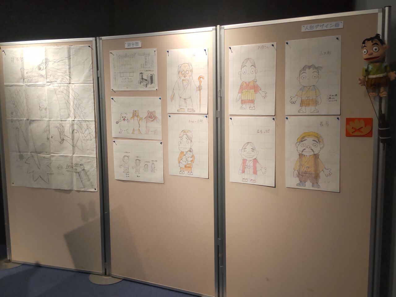 人形のデザイン画や舞台設計図なども、ぜひ近くで見てもらえたらうれしいです。