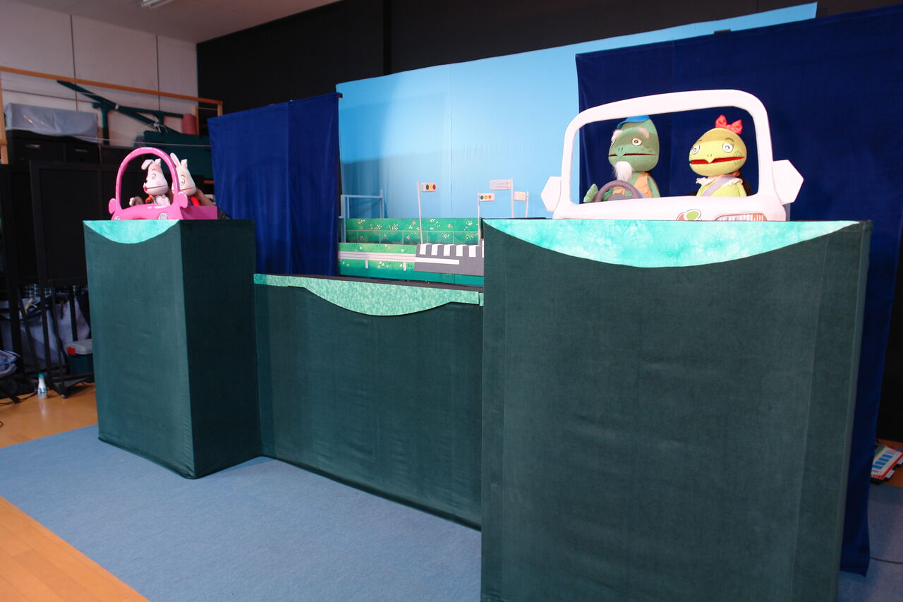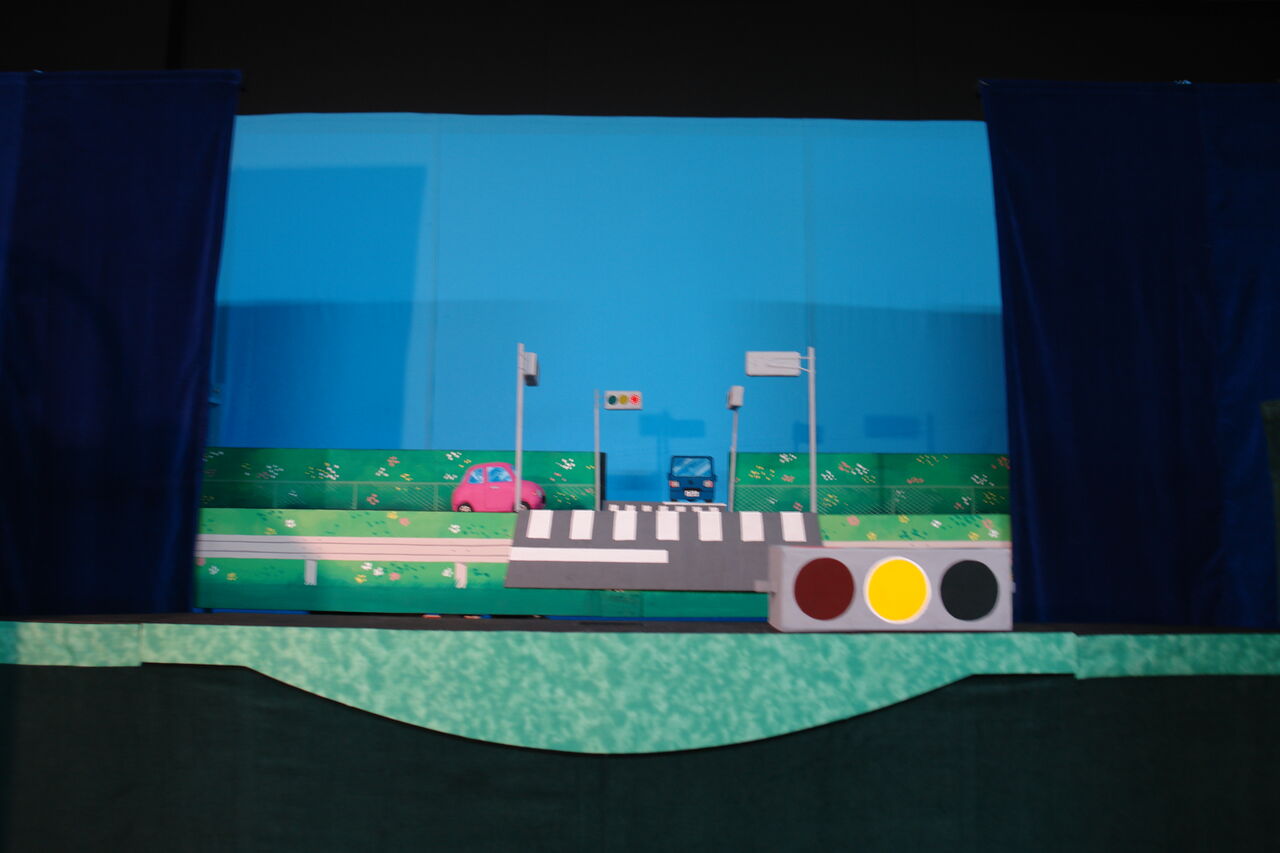 この人形劇は、東かがわ市交通安全対策協議会の指導員さん(日頃から通学路で