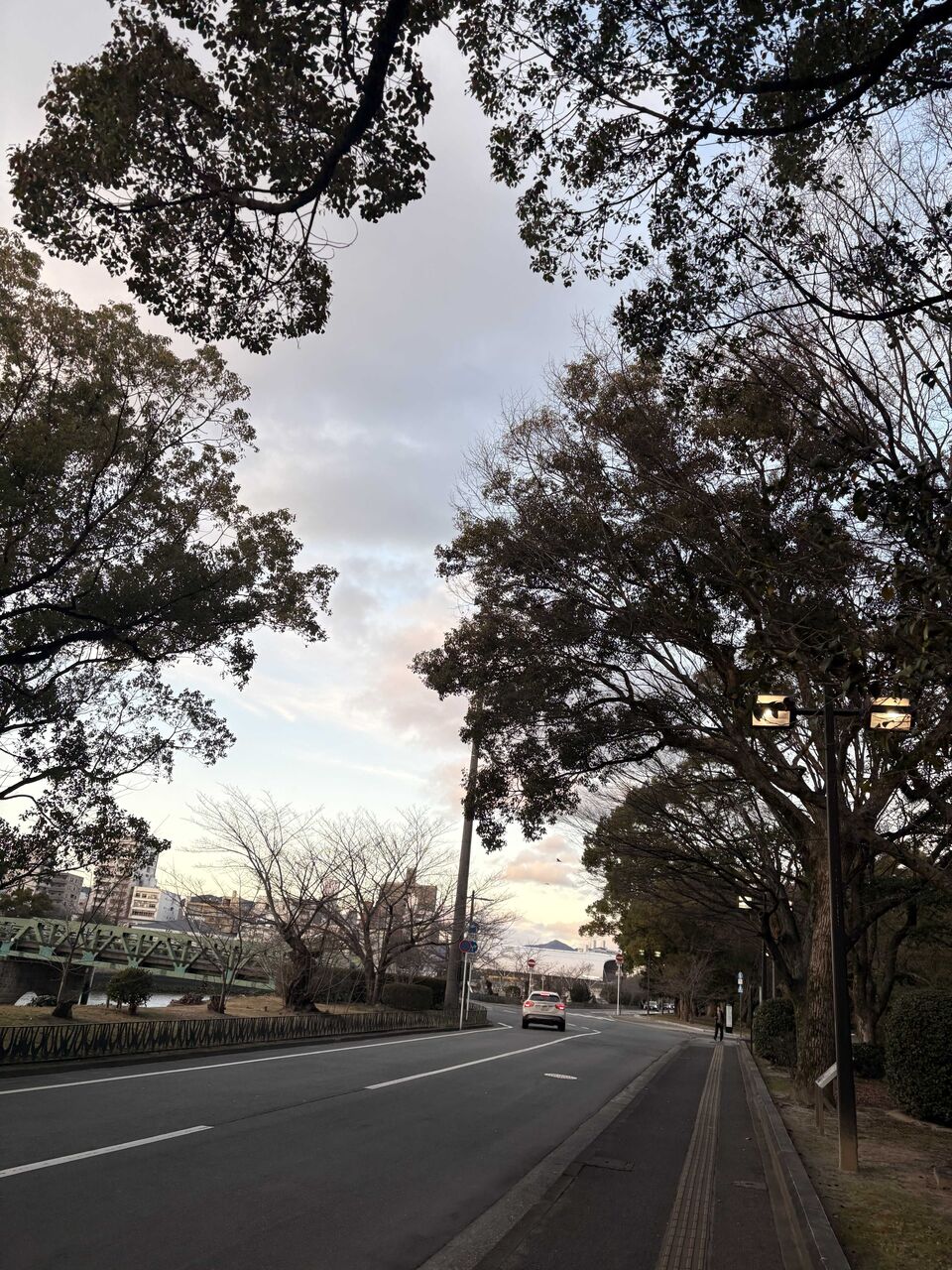川沿いを歩きながら、夕焼けに染まっていく空や見慣れぬ街の風景を眺め、